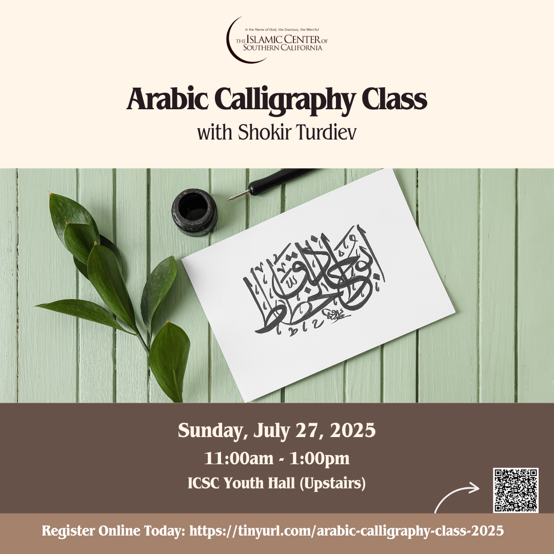 Join us for a special class on Arabic calligraphy with Shokir Turdiev. Registration is encouraged to help us prepare for materials and supplies.